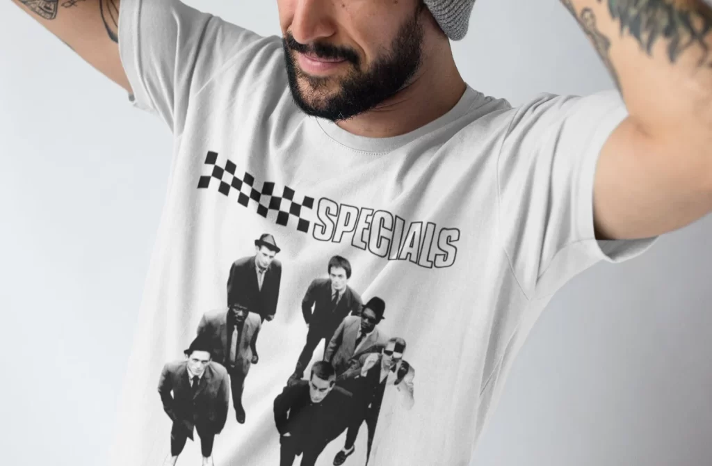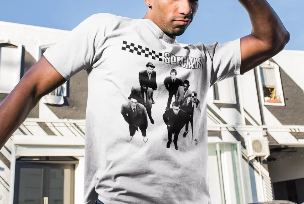 This tee features legendary art from the influential and enduring Specials LP, originally released 1979. Reproduced from original source material and printed carefully for on a premium t-shirt in solid white.