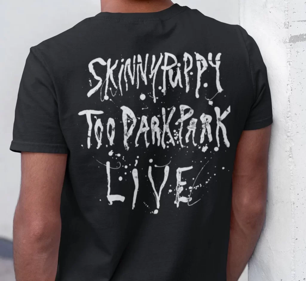 Skinny Puppy 1990 Too Dark Park Live Tour T-Shirt, recreated from source material.