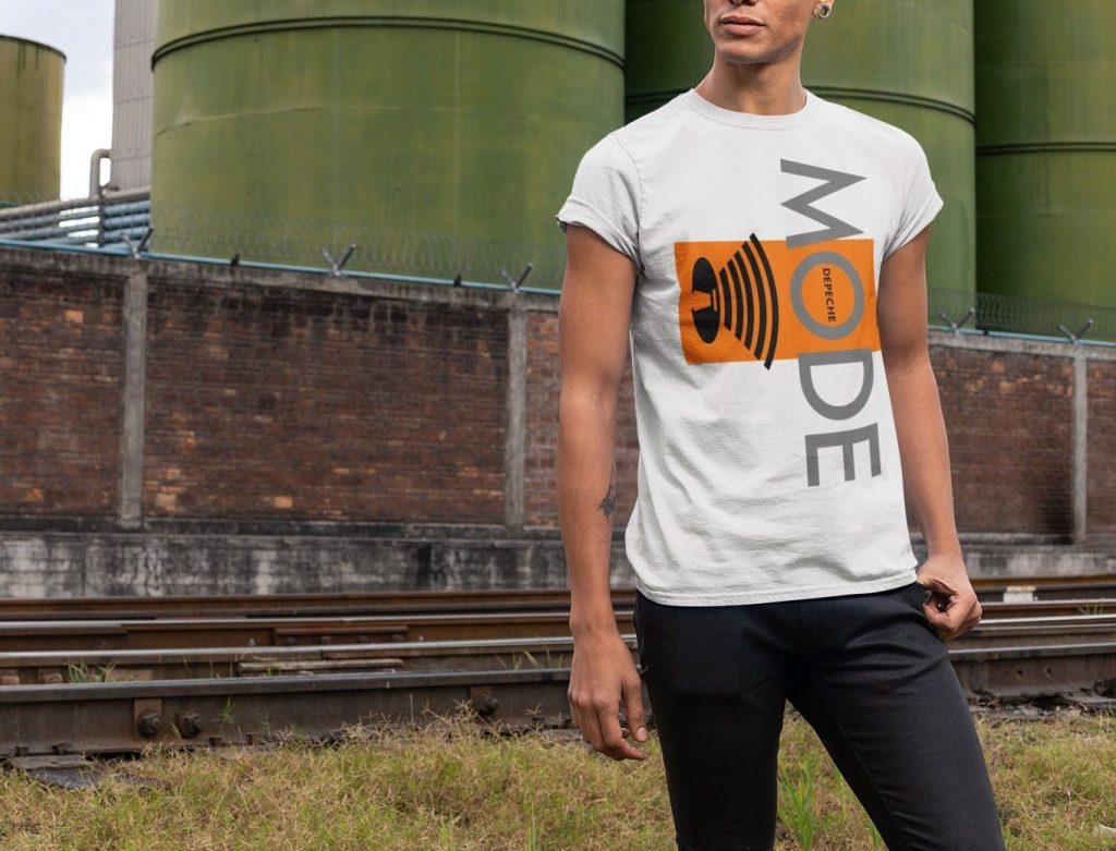 One of a number of designs sold while Depeche Mode was on tour throughout the world in 1987 and 1988, this two-sided tee features a bold graphic on the chest and tour city names on the back. The original design we have meticulously re-created and we carefully print it on a premium t-shirt in white.