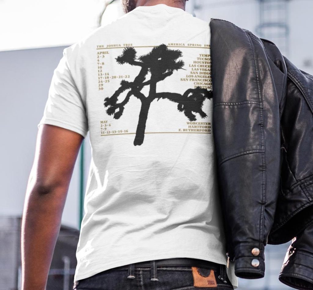 The U2 fanbase grew steadily throughout the 1980s from their debut onwards. But it was with the release of The Joshua Tree in early 1987 that the floodgates burst open. The band toured across North America and Europe for the majority of that year, selling out each arena stop without fail. This shirt design is one of several sold to fans that year.